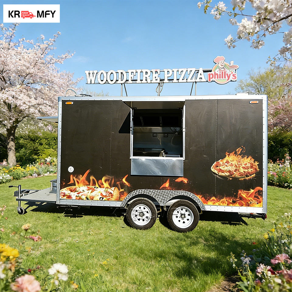 Remolque de cocina móvil cuadrado con certificación DOT CE, totalmente equipado con horno para pizza, parrilla y helados para venta ambulante.