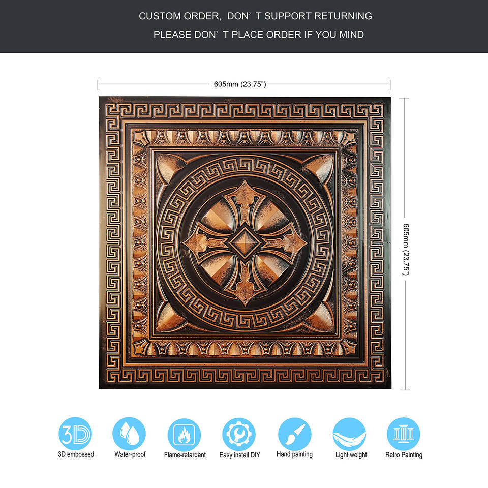 Paneles Decorativos Cuadrados de PVC para Techo, Color Cobre, para Interiores de Hoteles, Librerías y Bares, Fácil Instalación en Rejilla PL01