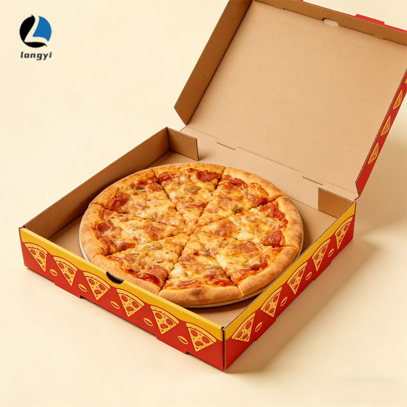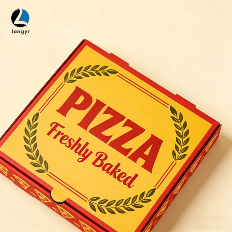 Caja de Pizza Cuadrada, Cartón Corrugado Kraft con Recubrimiento UV en Relieve, Impresión Personalizada, Portátil, de Alta Gama para Servicio de Pizza para Llevar