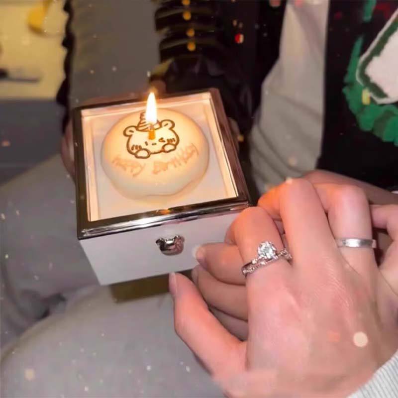 Caja de Anillo Giratoria Cuadrada con Estampado para Regalos de San Valentín, Bodas, Cumpleaños, Novio/Novia, Empaque de Joyería