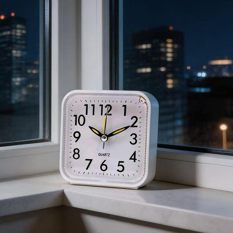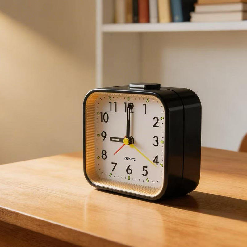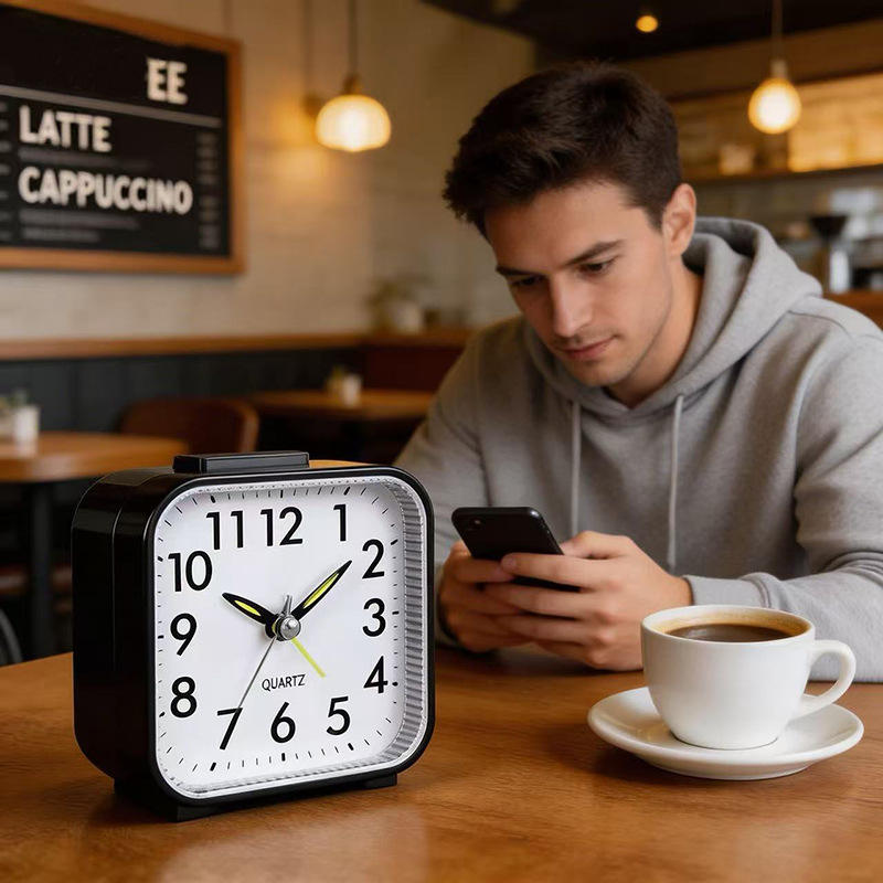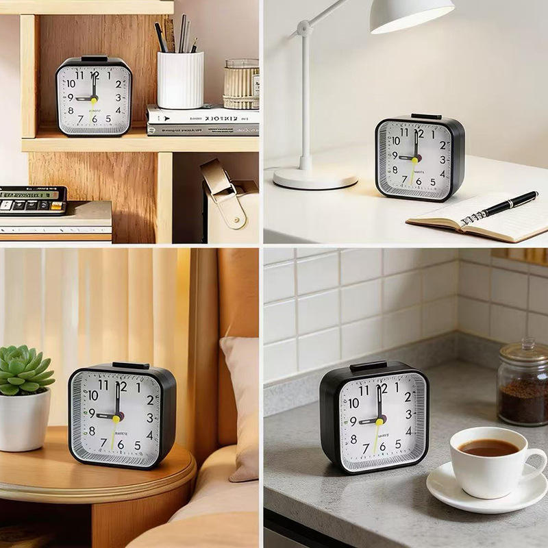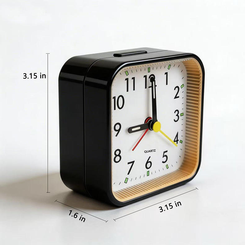 Reloj Despertador Cuadrado de Cuarzo con Luz Nocturna y Función de Repetición, Reloj de Escritorio para el Hogar y el Dormitorio