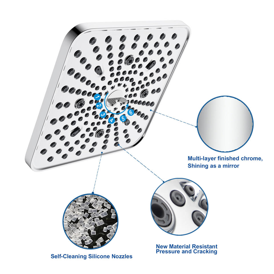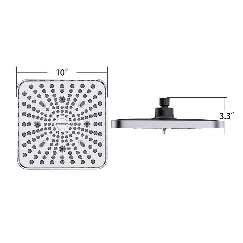 Cabezal de ducha cuadrado de 10 pulgadas con función de masaje por pulverización, rociador superior duradero para uso doméstico