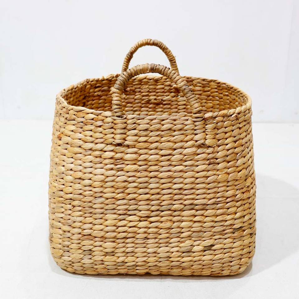 Cesta de Almacenamiento Cuadrada Rústica de Jacinto de Agua Ecológica Tejida a Mano y Cesto con Asas