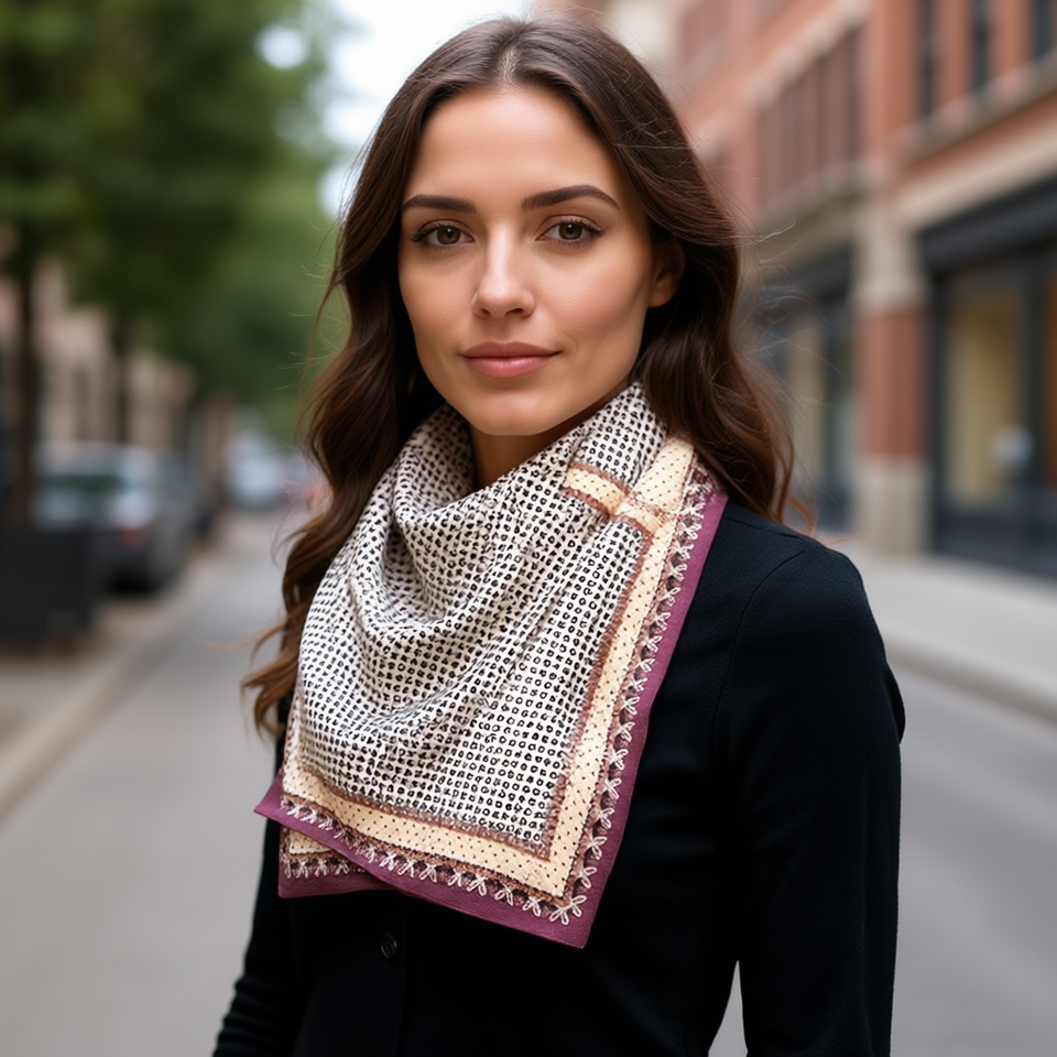 Pañuelo Cuadrado de 70x70 cm con Diseño de Letras y Puntos, Pañuelo Pequeño, Accesorio de Moda