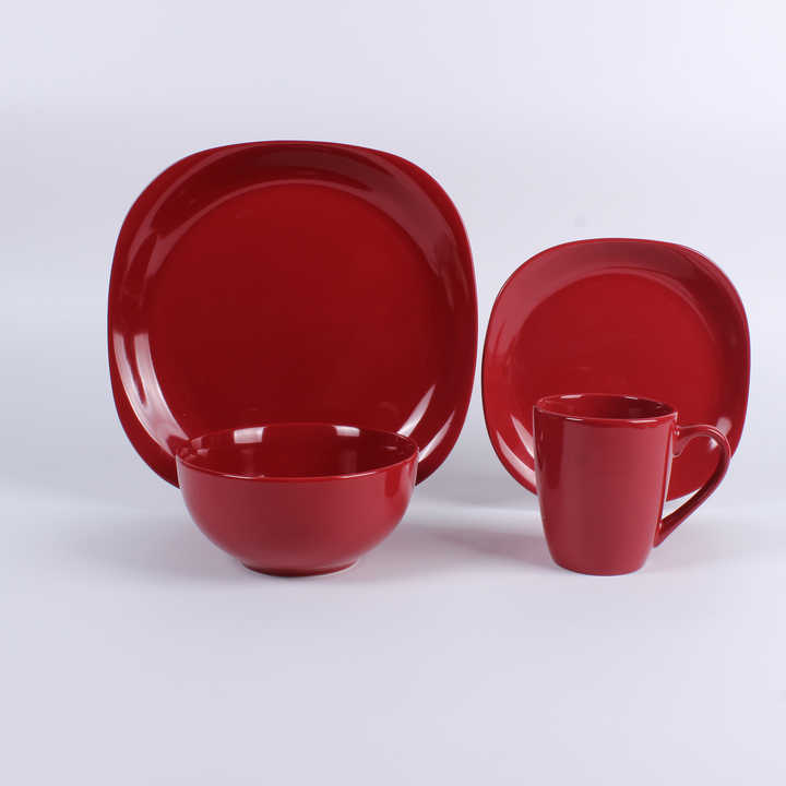 Juego de Vajilla de Porcelana de 16 Piezas con Forma Cuadrada, Platos de Cena de Cerámica