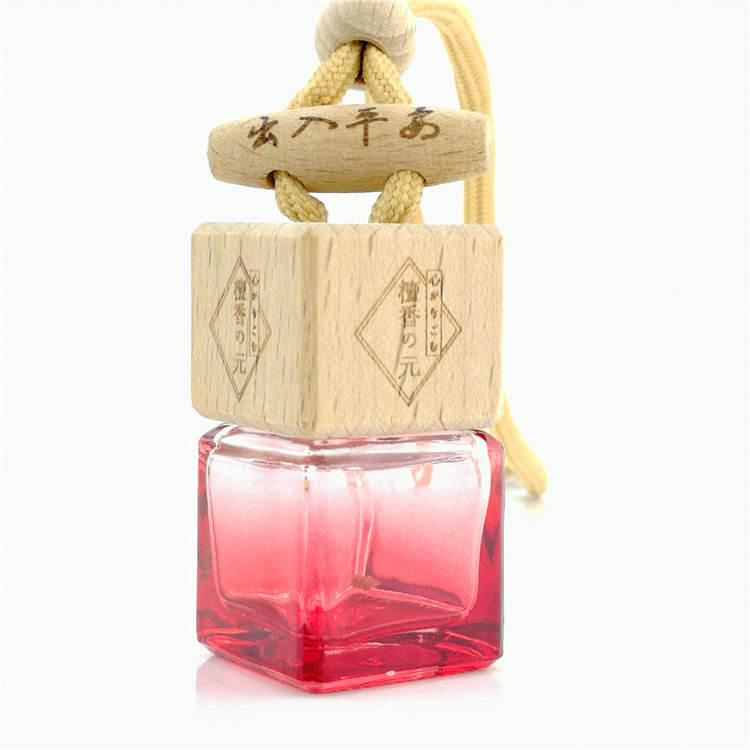 Botella colgante vacía con forma cuadrada para coche, cubierta de madera de vidrio con difusor de perfume, 8ml