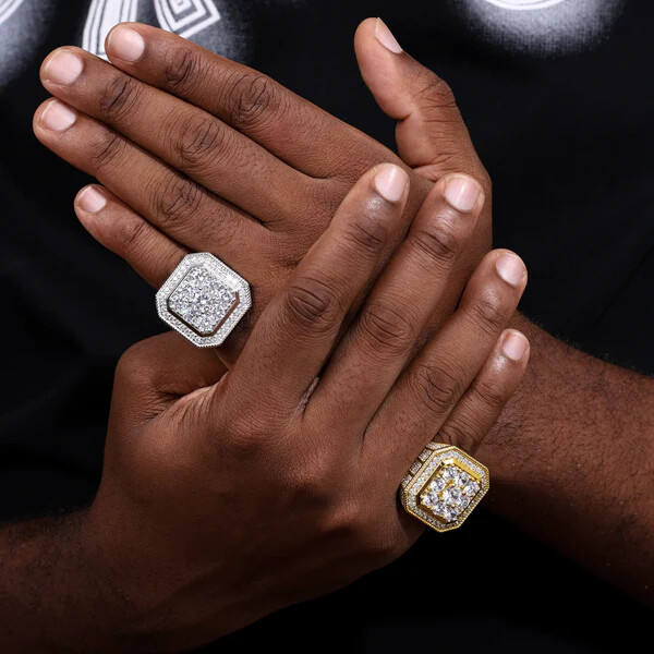 Anillo de pareja de forma cuadrada para mujer, joyería de moissanita de Hip Hop de alta calidad de Plata de Ley 925 de lujo
