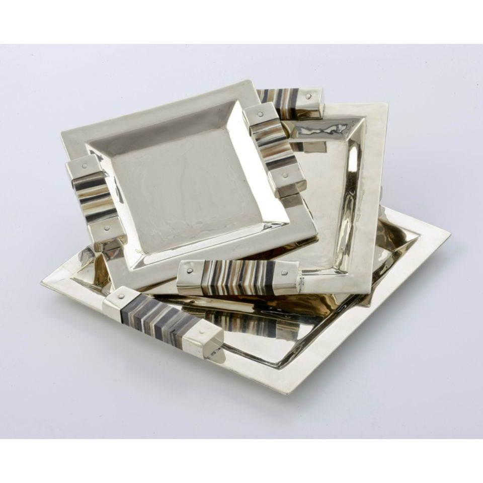 Bandeja cuadrada de acero inoxidable de la mejor calidad, plateada, brillante y pulida, para servir alimentos y dulces, procedente de la India, a bajo precio.