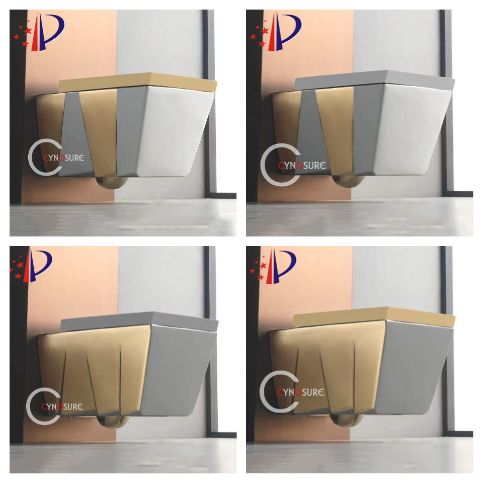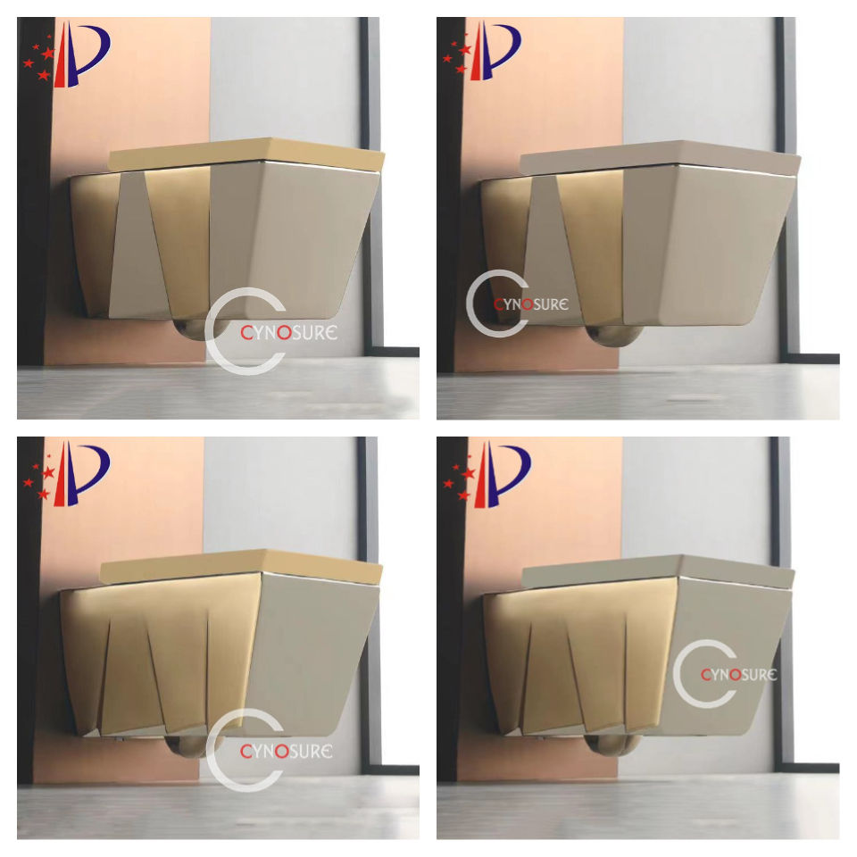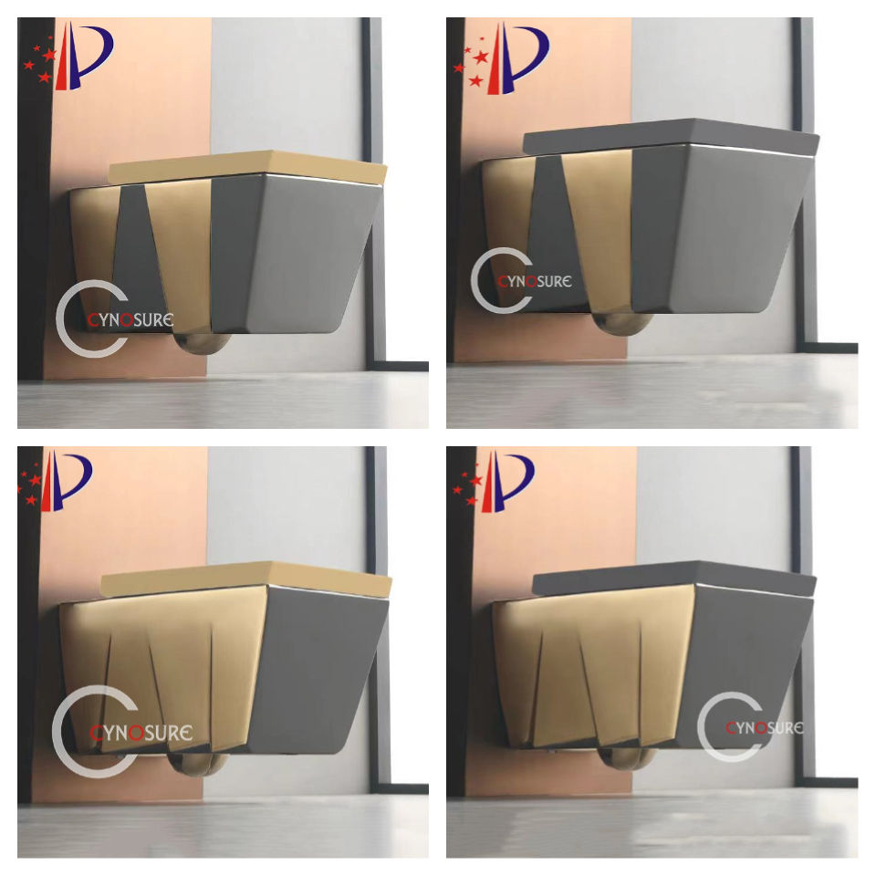 Inodoro de Pared de Lujo, Forma Cuadrada, Cerámica Brillante/Mate, Sin Borde, Electrochapado en Dorado/Plateado/Negro