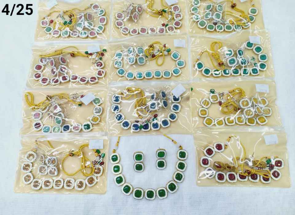 Green Pearl & Kundan Studded Necklace Jewellery Set