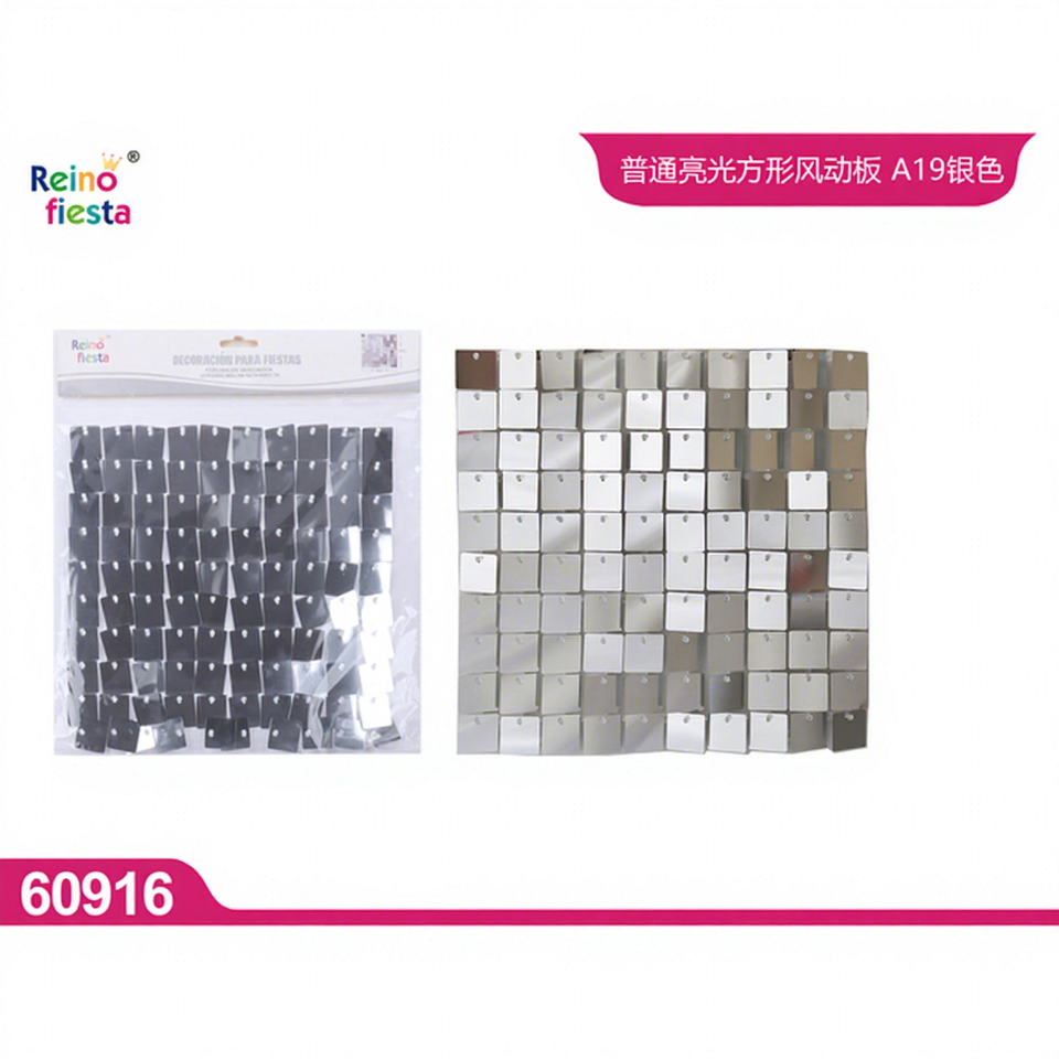Panel de viento cuadrado plateado reflectante A19 de 30cm para decoraciones de pared de fiesta