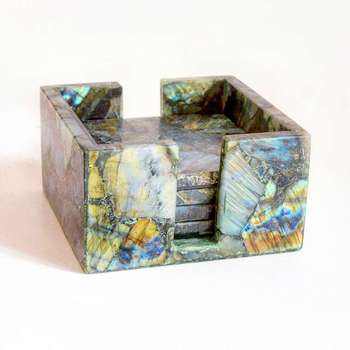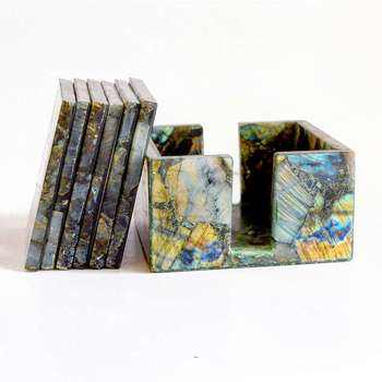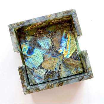 Juego de Posavasos Cuadrados de Labradorita, Resistentes al Calor, Duraderos, Naturales, Protegen las Superficies, Estilo Moderno y Elegante, Hechos a Mano, Regalo de Boda