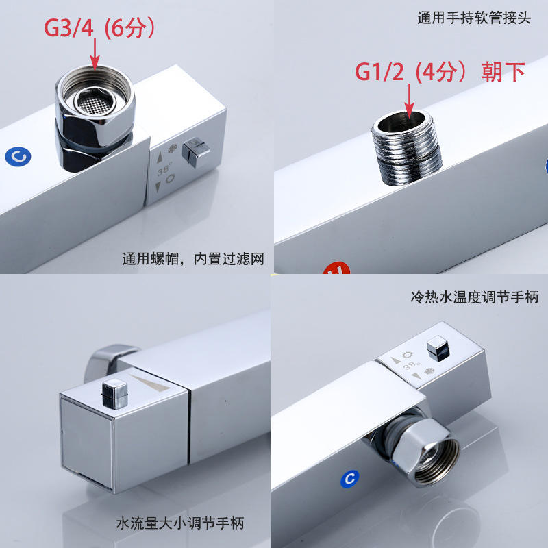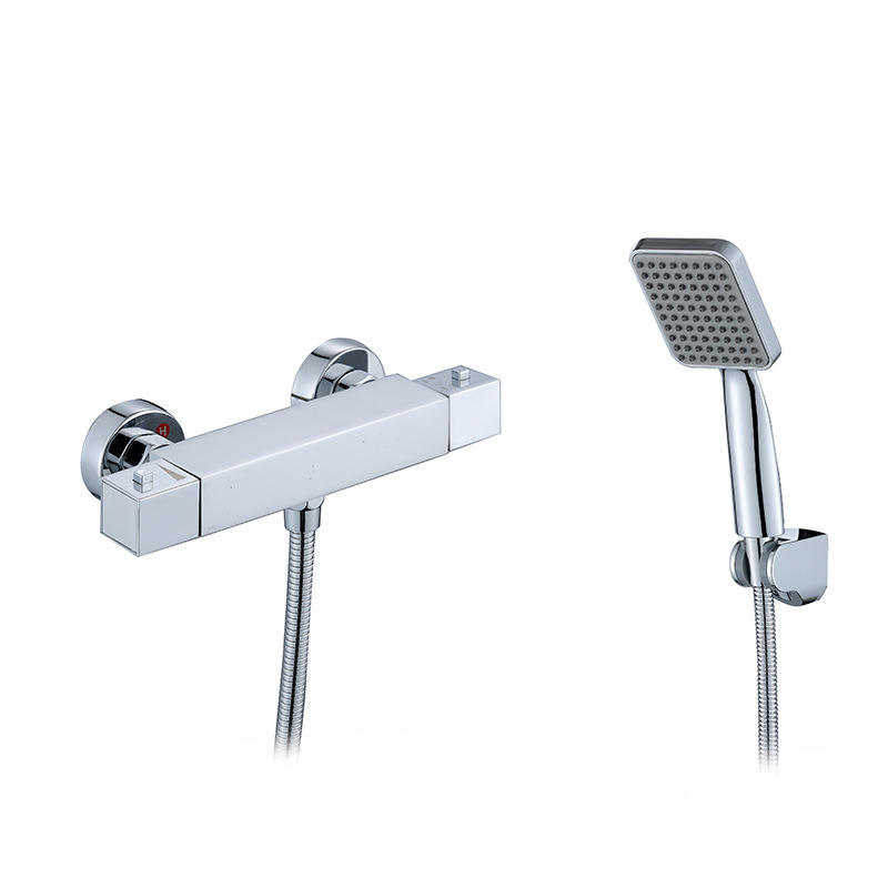 Juego de grifería termostática cuadrada para ducha, válvula de cerámica de cobre, cabezal de ducha tipo lluvia, cromado, 2 manijas, control de temperatura