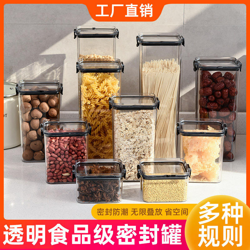 Contenedor Cuadrado Transparente Hermético para Almacenamiento de Alimentos con Tapa de Clip para Granos, Cereales, Bocadillos, Productos Secos, Té, Uso en la Cocina