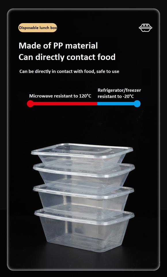 Caja cuadrada transparente para llevar, fiambrera de plástico para el hogar, contenedor de mantenimiento fresco, fiambrera desechable de grado alimenticio, Rectangular