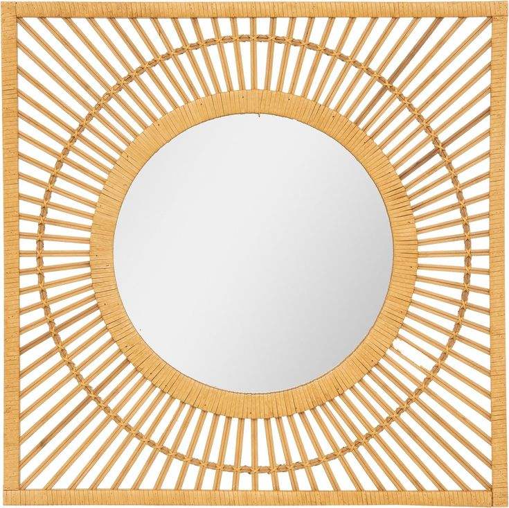 Espejo de pared cuadrado de ratán con marco tejido, perfecto para casas de playa costera, dormitorios Boho chic y cocinas rústicas de granja