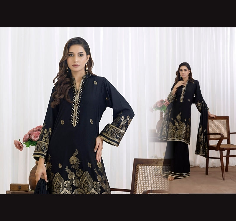 Ssumaira Presente SALINA JACQUARD 3 piezas Cosido-Lujo AIRJET Jacquard Viscosa Kameez Salwar Dupatta