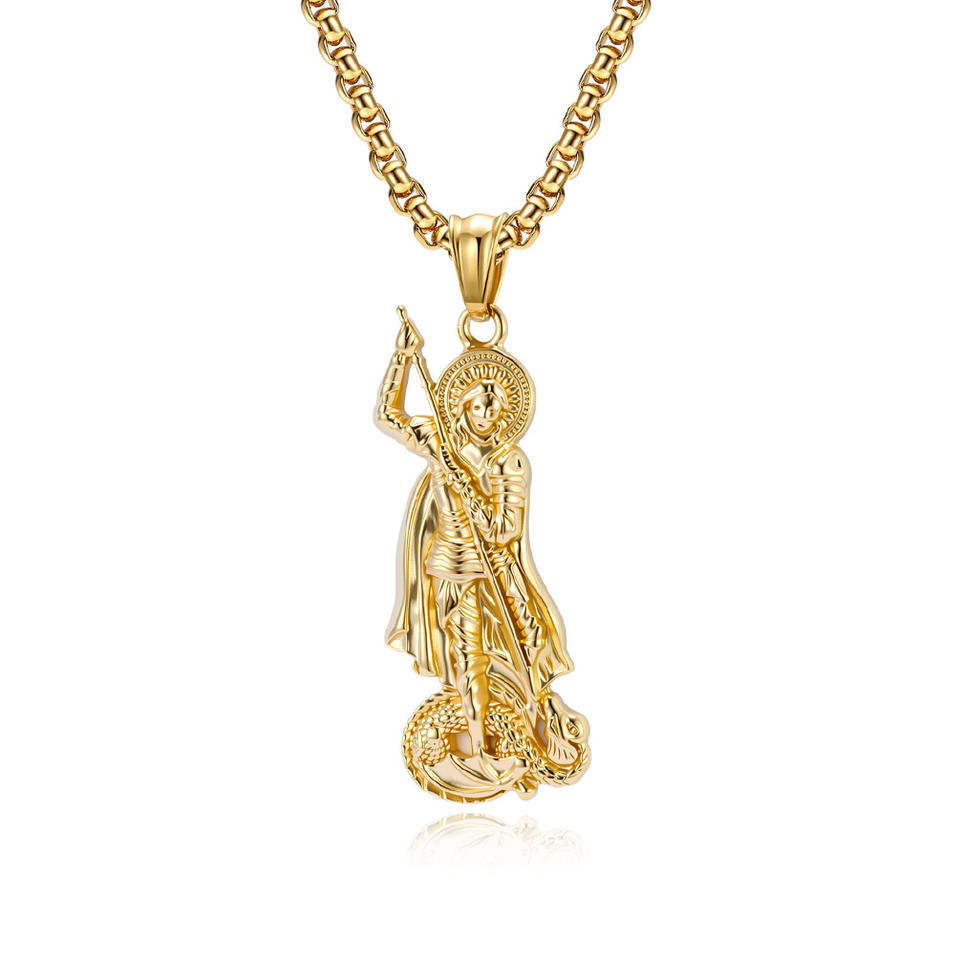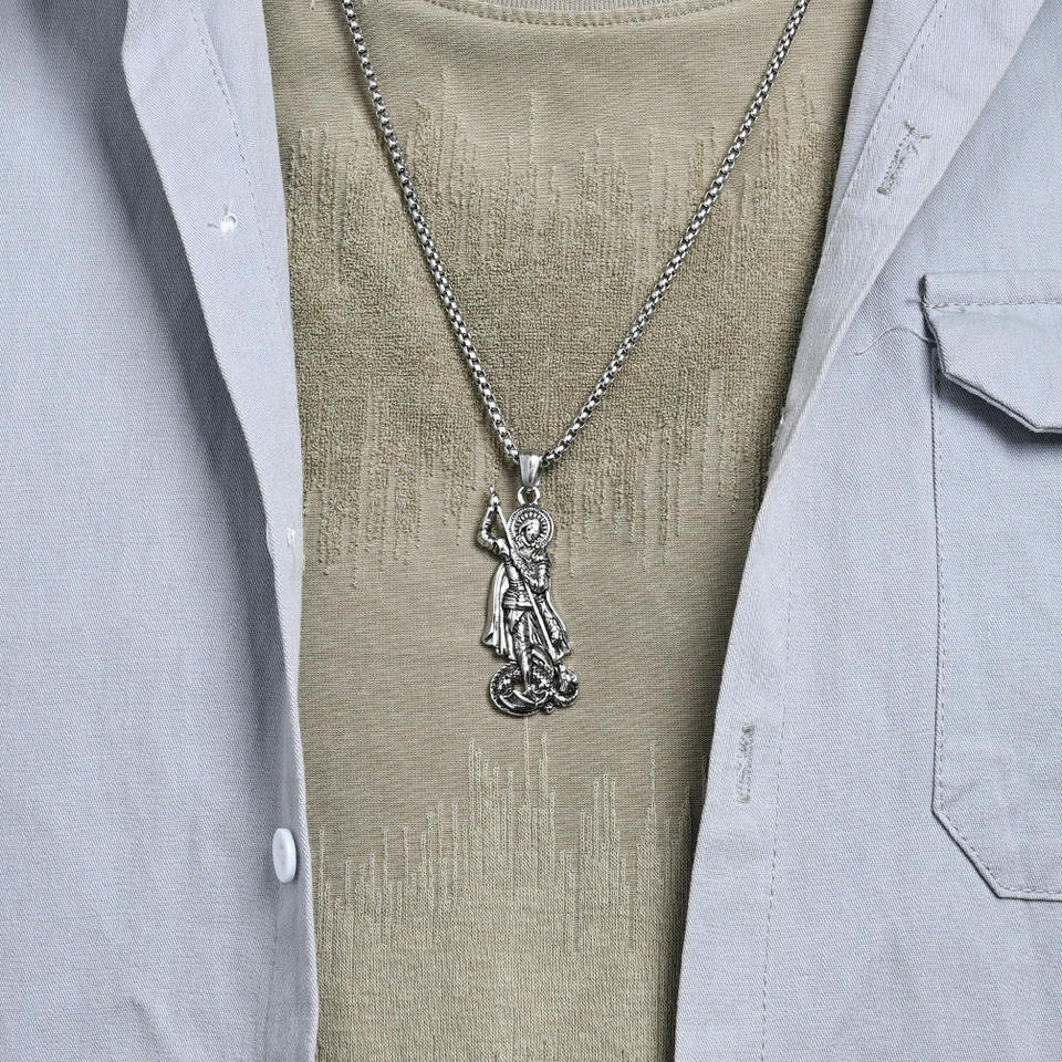 Colgante de San Jorge Matadragones para hombre, collar temático de acero inoxidable, joyería de regalo