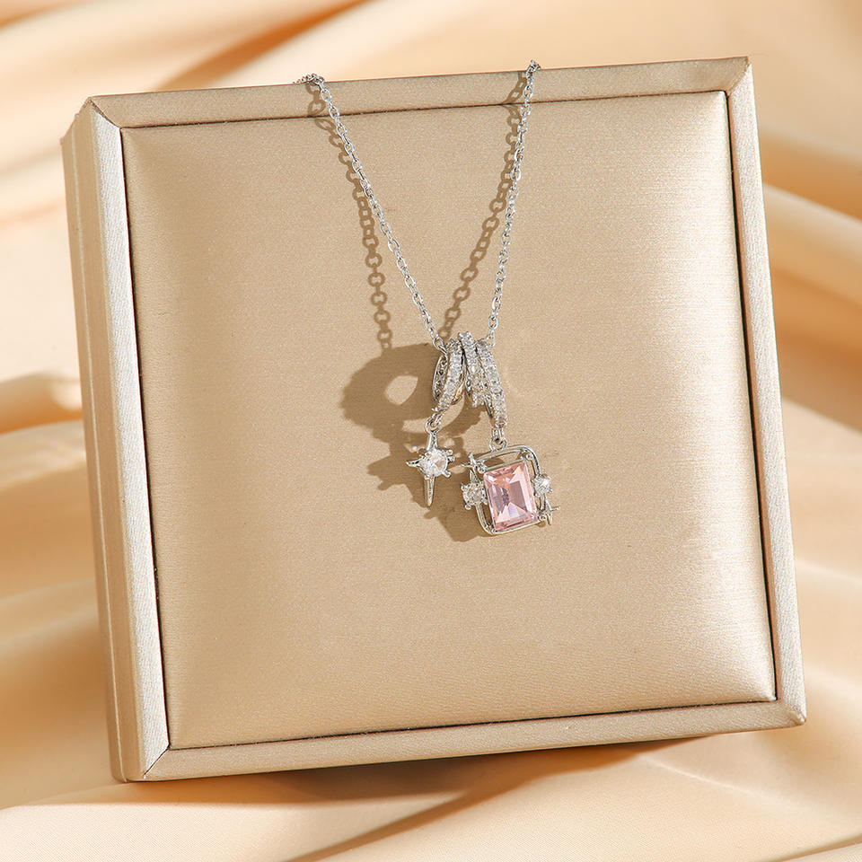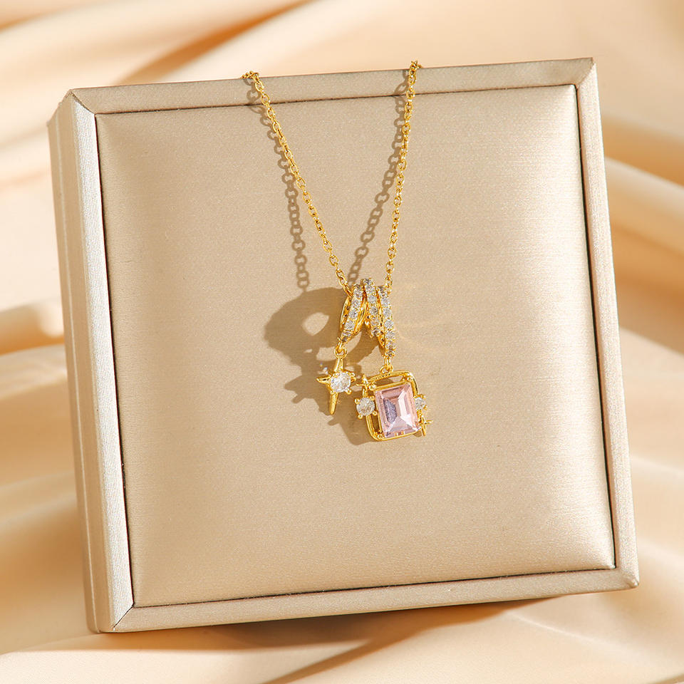 Collar de acero de titanio cuadrado de azúcar de sentido de diseño de nicho StaZircon