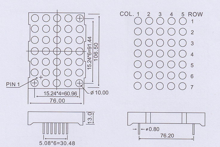 Pantalla LED de Matriz de Puntos de 4 Pulgadas y 5x7, Modelo Houkem-40057-BPG, Aplicable a Equipos de Seguridad, Tubo Digital Verde Puro