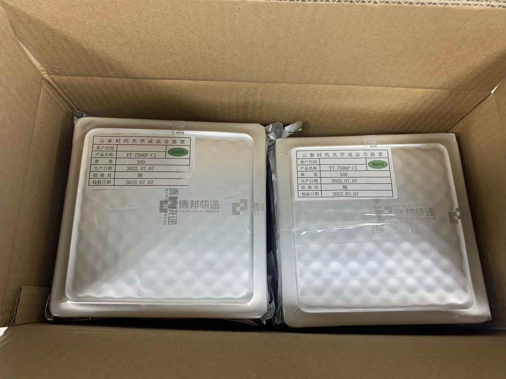100 piezas por bandeja de embalaje y caja retráctil al vacío, 1000 piezas por caja