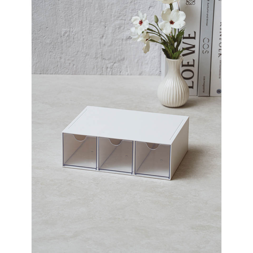 Cajón apilable de 3 compartimentos para almacenamiento de escritorio y organizador