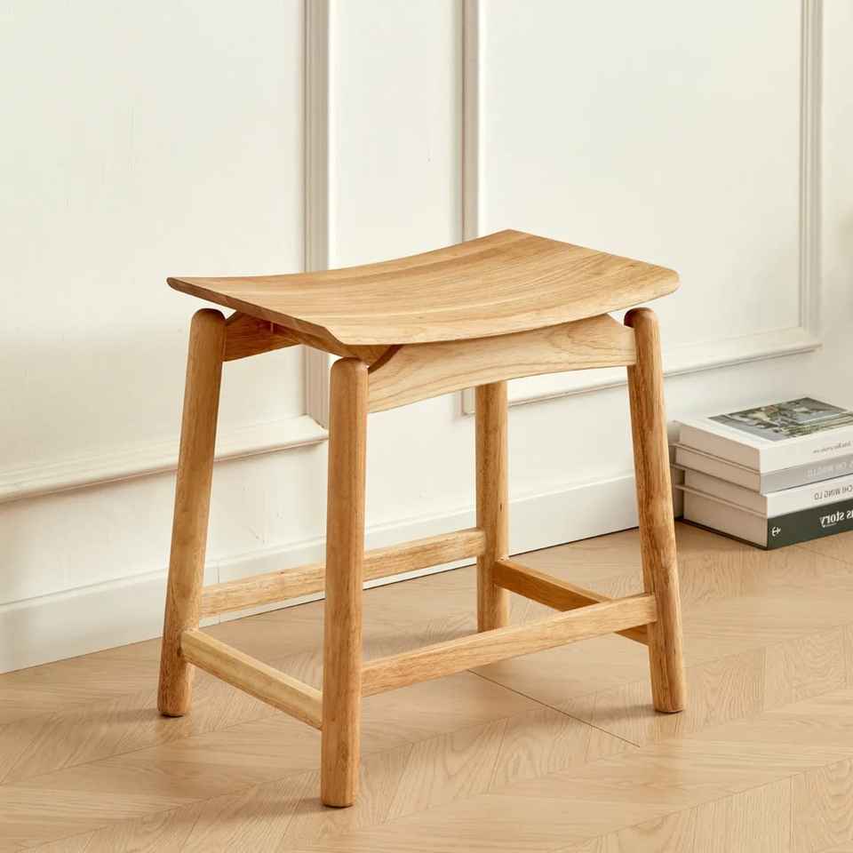 Taburete Redondo Apilable de Madera Curvada, Taburete de Comedor de Madera Maciza, Taburete Moderno de Madera de Abedul, Taburete de Cocina que Ahorra Espacio, Acabado en Nogal