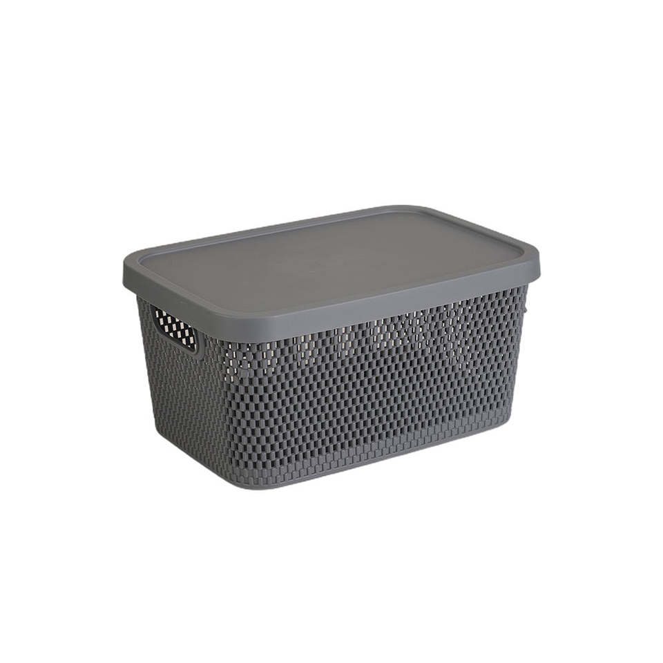 Cesta de Almacenamiento Apilable de Plástico con Tapa y Diseño de Malla, Organizador a Prueba de Polvo para Artículos del Hogar