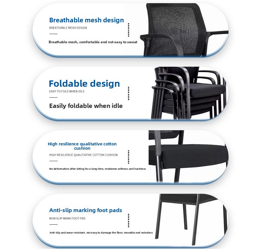 Silla de entrenamiento de malla apilable Silla DE TRABAJO DE MALLA plegable ergonómica con ruedas para oficina y sala de reuniones