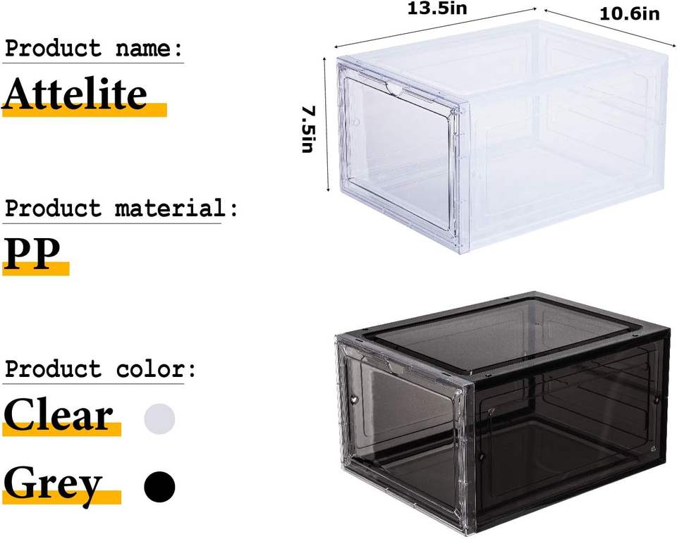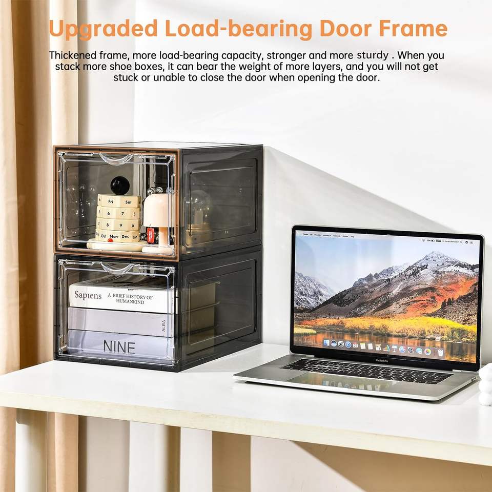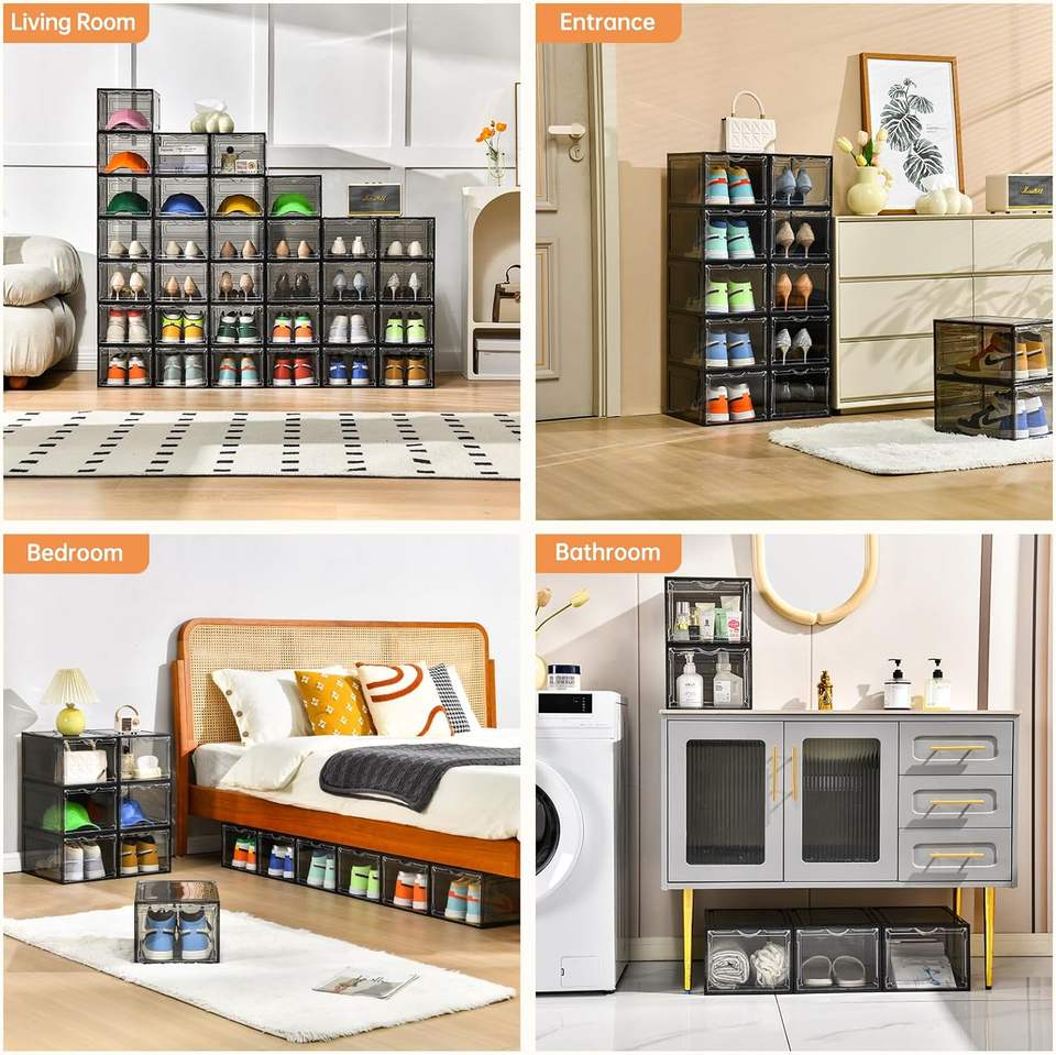 Caja Apilable de Plástico para Zapatos con Puerta Transparente para Exhibición de Zapatillas Deportivas, Se Ajusta hasta Talla 13 de EE. UU., Caja de Zapatos Negra con Apertura Frontal