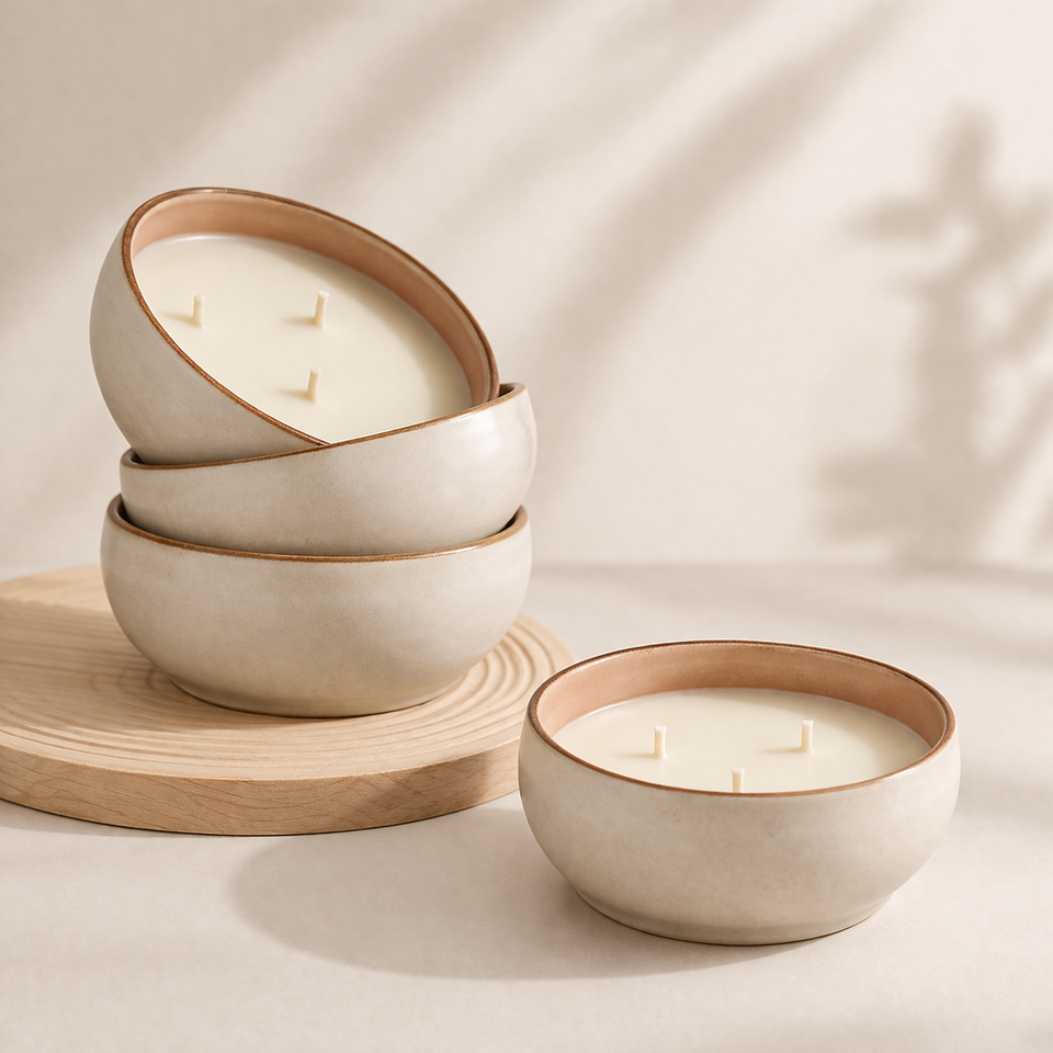 Recipiente Apilable Redondo de Cerámica para Velas, Pared Gruesa, Resistente al Calor, Acabado Mate Suave, Multi-Vela, Lujo, Reutilizable, Decoración del Hogar