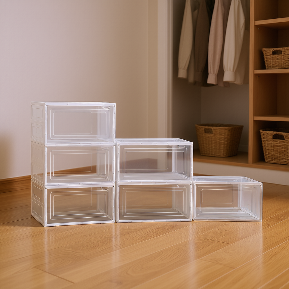 Cajas Apilables para Almacenamiento de Zapatos, Plástico Transparente Blanco, Paquete de 6, 33x15x85cm, Organizador para Zapatos