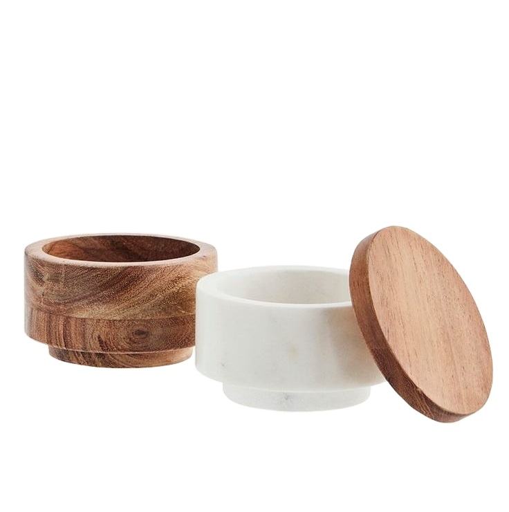 Juego de bodega de sal apilable de madera y piedra blanca con tapa superior de madera elegante organizador de especias de varios niveles duradero cocina perfecta