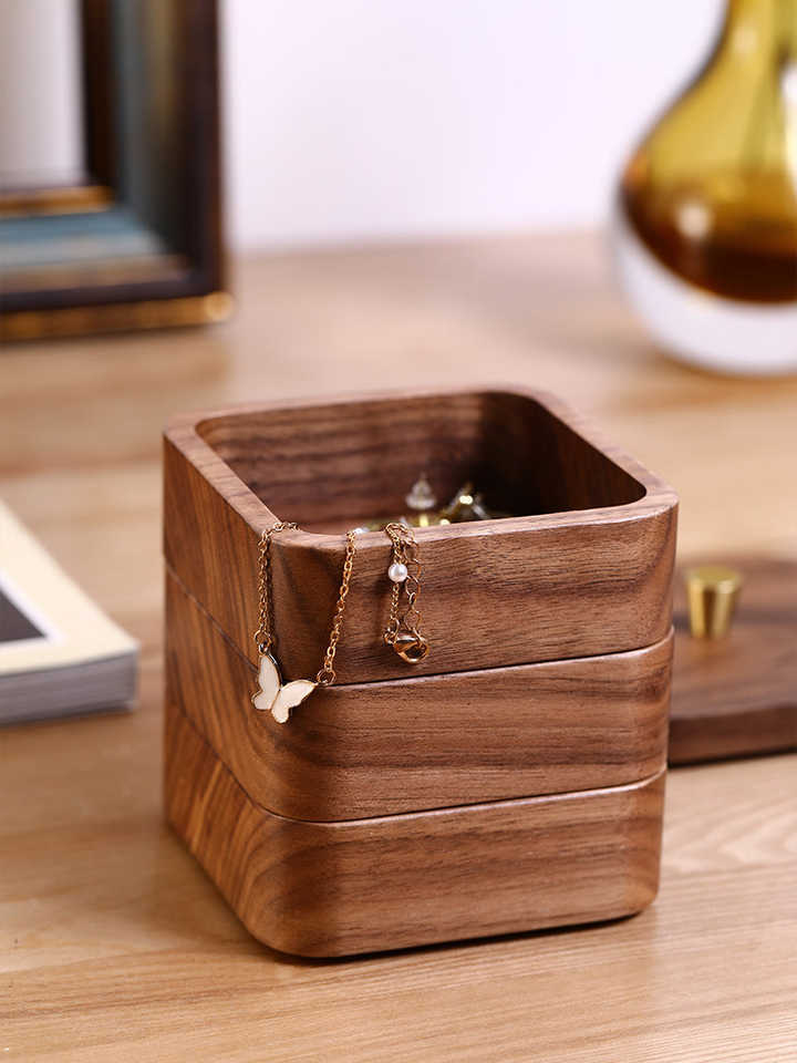Joyero apilado de nogal negro, caja de palillos de dientes, regalos y artesanías, cajas de madera, carteles de pared hechos en la India