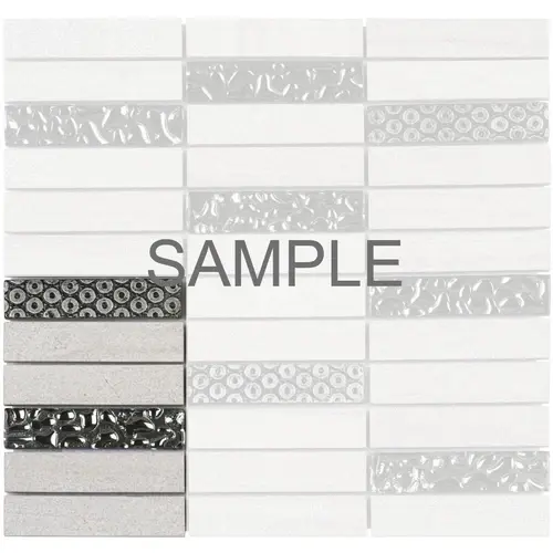 Azulejo de mosaico de piedra de mármol gris de roble blanco de patrón apilado Azulejo de salpicaduras crudo de la colección de azulejos