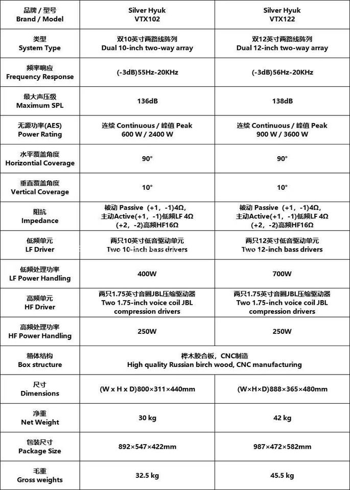 Características:Altavoces duales de matriz de dos rutas de 12 pulgadas