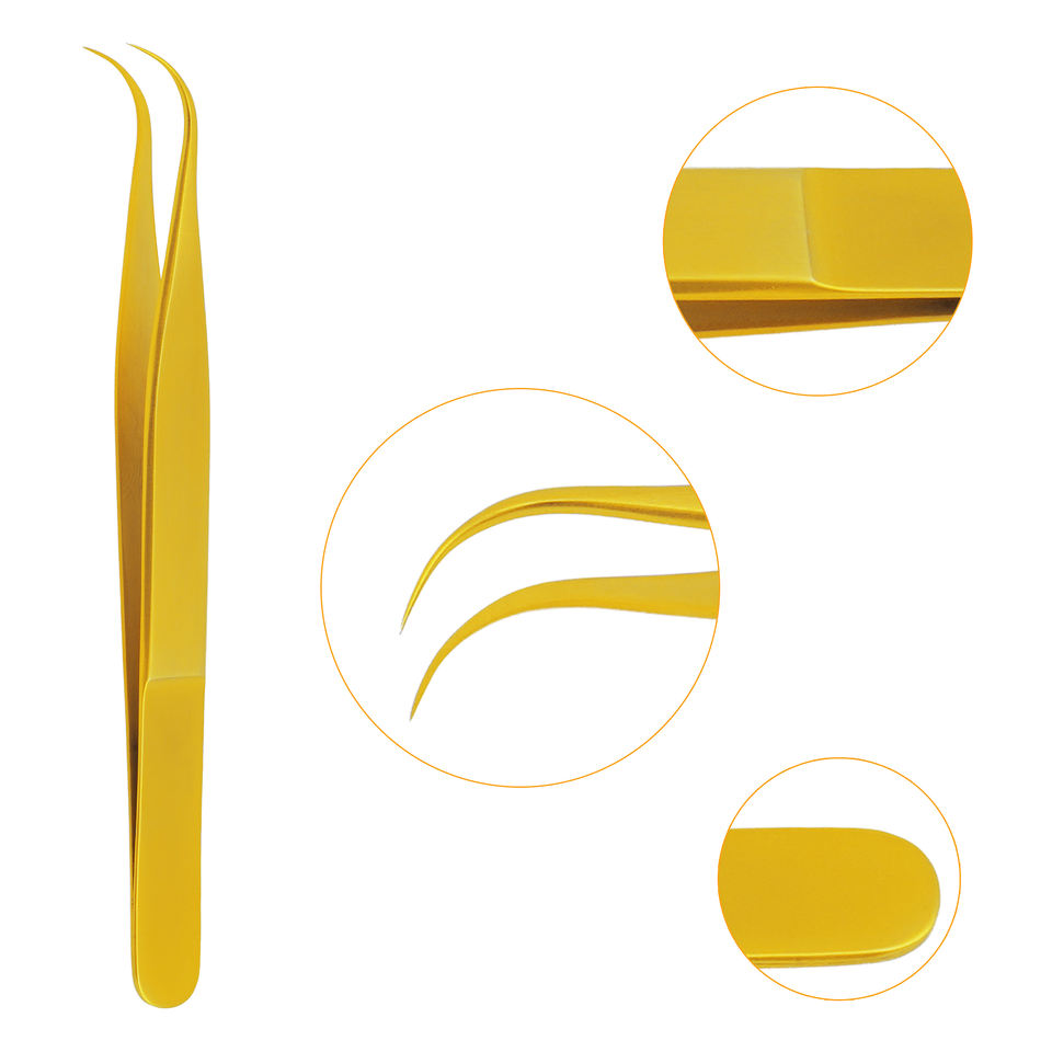 Pinzas para Pestañas Stahlmann Pro de Alta Calidad con Logotipo Personalizado, Acero Inoxidable Dorado de 11.5 cm, Punta Lisa y Dentada para Pestañas