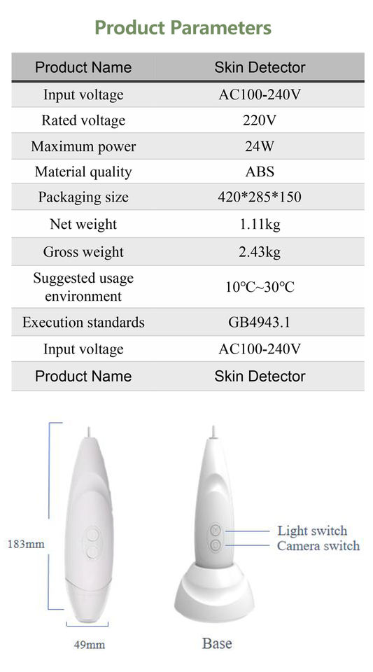 Aplicación:Cuidado de la piel, Cuidado de la cara, SPA, Salones de belleza, Detector DE LA PIEL