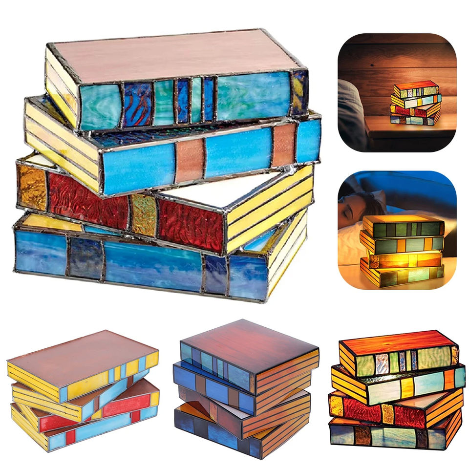 Lámpara de Libros Apilados de Vidrio Teñido, Lámpara de Escritorio de Vidrio Hecha a Mano, Lámpara de Libros Apilados de Resina, Luz de Lectura para Escritorio