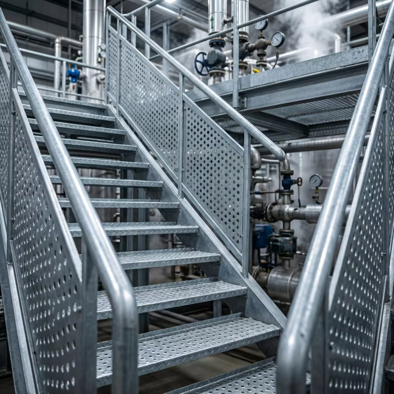 Peldaños Perforados de Acero Inoxidable, Varias Especificaciones, Peldaños Perforados Galvanizados para Construcción de Ingeniería y Renovación de Escaleras