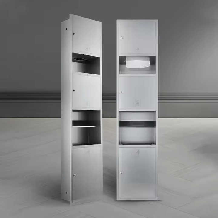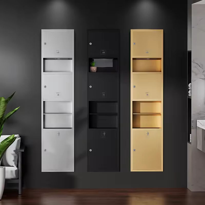 Nombre del Producto:Combinación de papel higiénico, toallas de papel, secador de manos y papelera para baño.