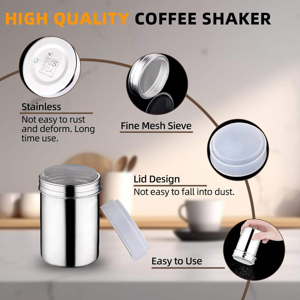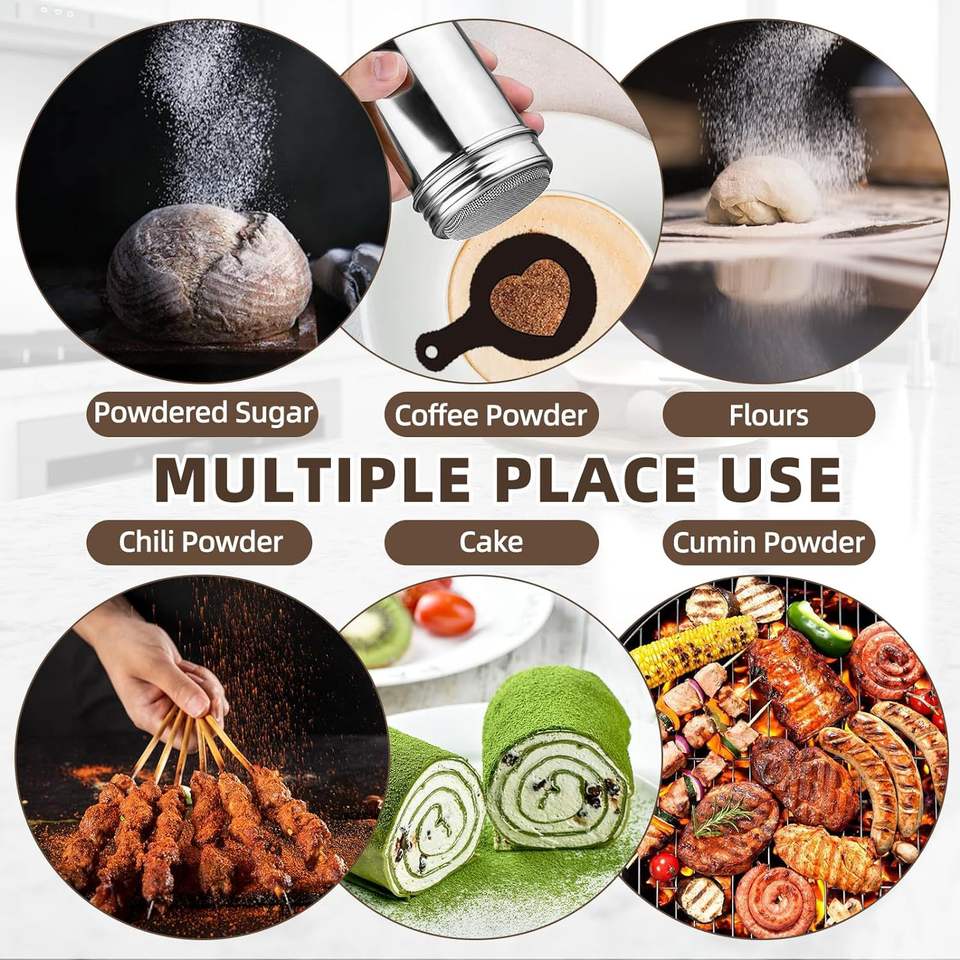 Bote de Acero Inoxidable 304 para Esparcir Polvo, Tarro de Malla para Azúcar, Botella para Condimentos, 16 Herramientas para Café, Repostería y Pastelería