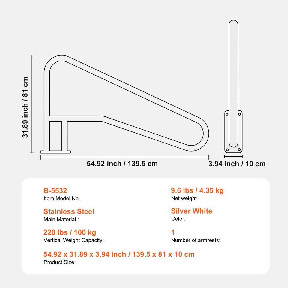 Barandilla de Acero Inoxidable para Piscina de 55 x 32 Pulgadas con Placa Base, Barandilla de Seguridad para Piscina Interior/Exterior, Herramientas y Accesorios para Piscina