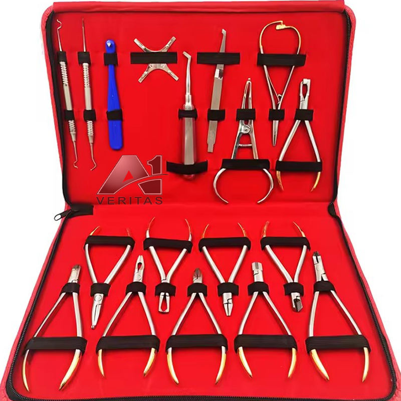 Kit de instrumentos de ortodoncia dental de primera calidad de acero inoxidable, 18 piezas, venta al por mayor, equipos dentales personalizados, conjunto CE