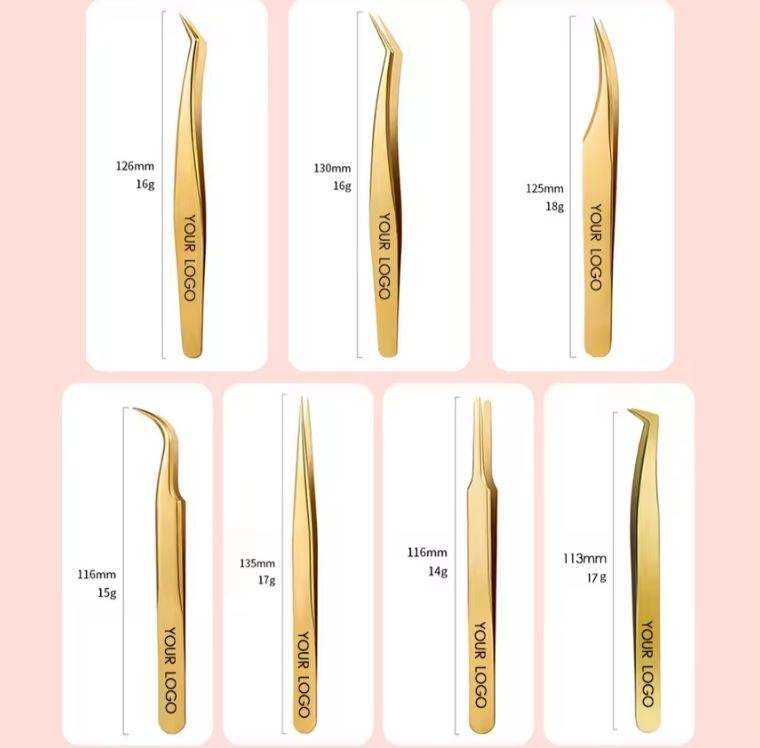 Pinzas de Acero Inoxidable de Primera Calidad, Chapadas en Oro, para Volumen de Pestañas Postizas, con Estuche de Cuero PU para Kit de Extensión de Pestañas