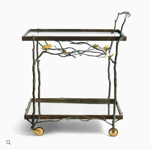 Cuencos grandes decorativos de acero inoxidable y latón para comida y carrito de bar para encimeras y mesas en acentos de moda para el hogar