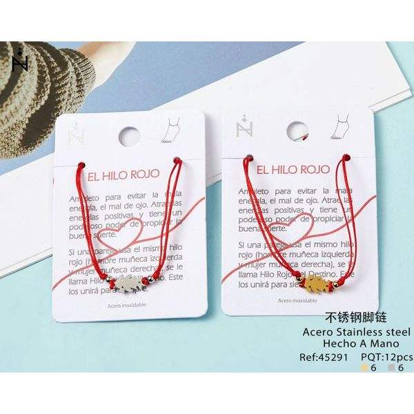 Tobillera de acero inoxidable para niños con hilo rojo para protección y buena suerte