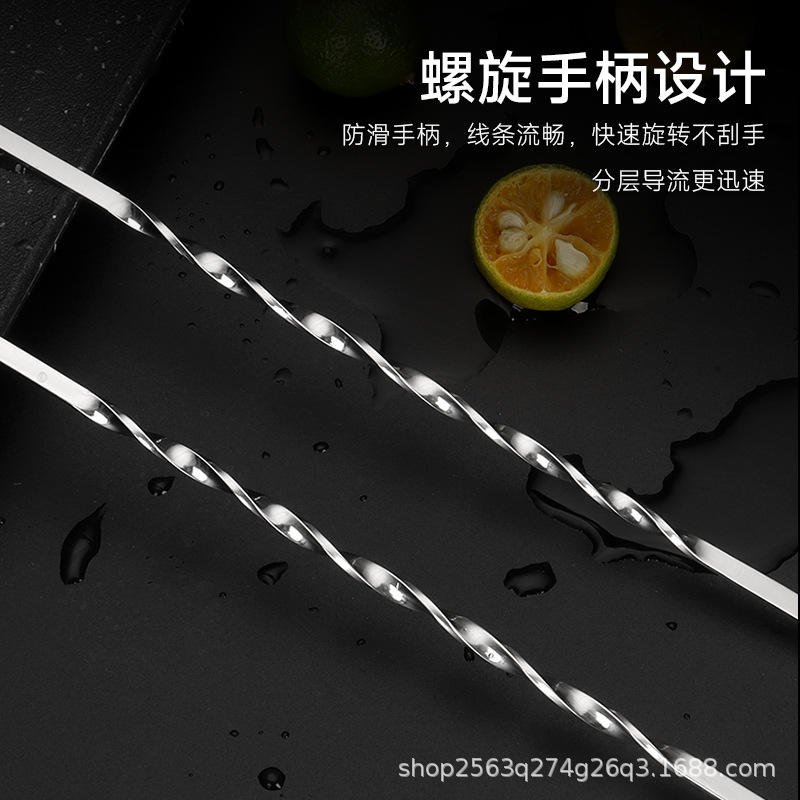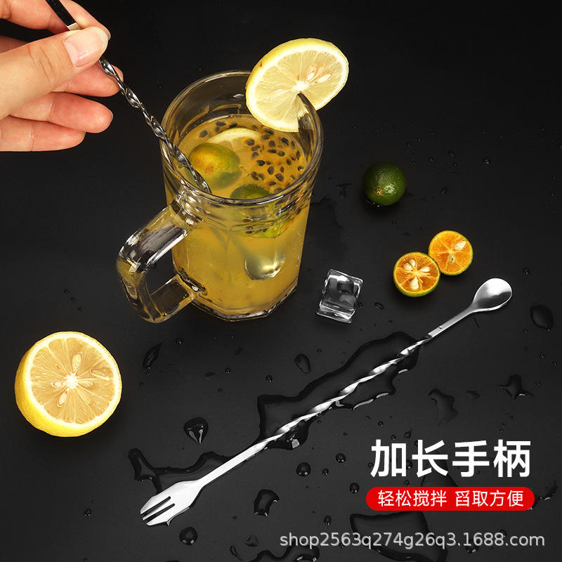 Cuchara de barra de acero inoxidable con mango largo, herramienta para mezclar cócteles de doble punta, cuchara para agitar café, color sólido duradero