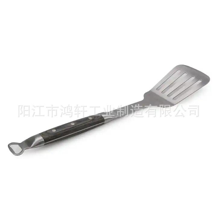 Juego de herramientas para barbacoa de acero inoxidable con mangos de madera, equipo para asar al aire libre de 5 piezas para voltear y servir
