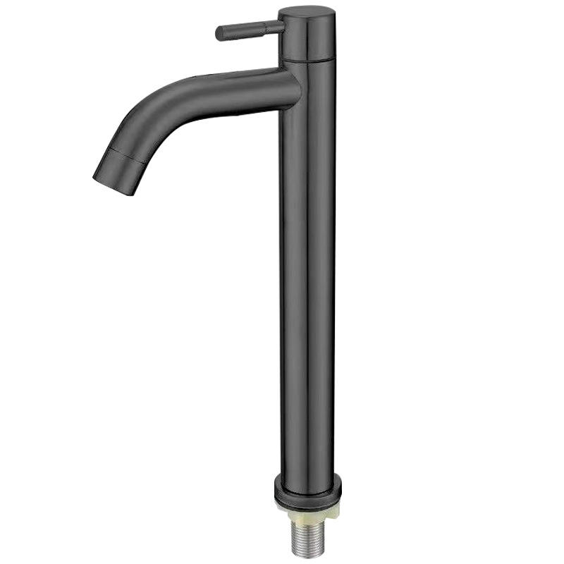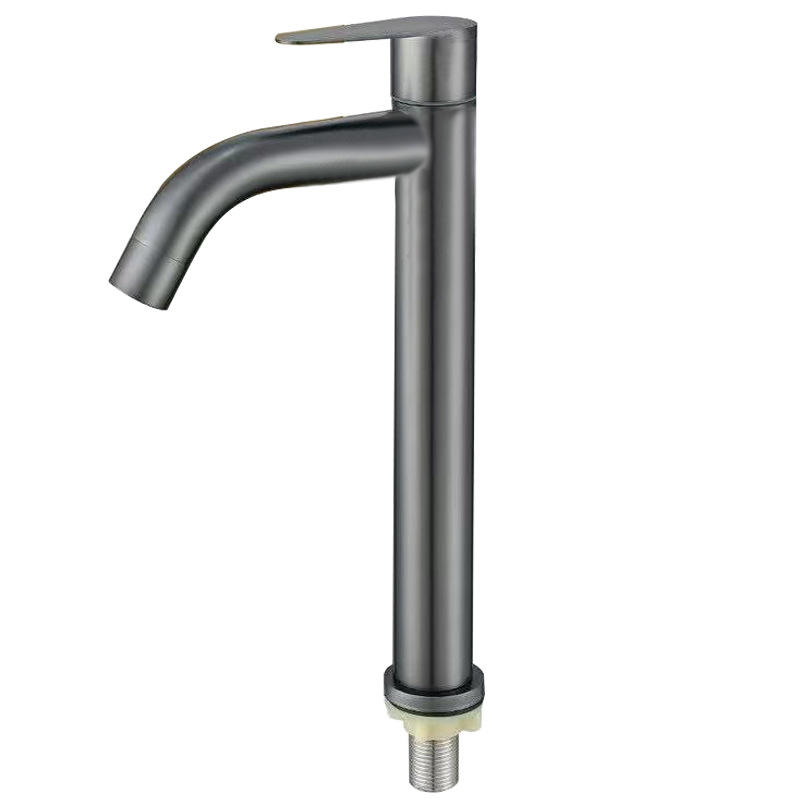 Grifo de lavabo de acero inoxidable con un solo manípulo, un solo orificio, montado en cubierta, con válvula de acero inoxidable, para agua fría y caliente, diseño elevado